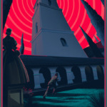 Mondo m’a ensuite confié l’affiche de Jaws. À l’époque, il n’en existait qu’une, celle très graphique de Tom Whalen. Ce fut encore un sacré challenge. Le poster officiel est tellement marquant, fort, iconique. Il est gravé dans notre cerveau. Comment passer derrière ? J’ai d’abord refusé la proposition, tout en griffonnant une idée de dessin avant de les rappeler. Ils ont adoré l’idée de ce quartier de parasol qui symbolise l’aileron du requin. Mon concept allait à l’opposer de ce qui était attendu. Je me suis concentré sur des éléments secondaires qui évoquent le film, comme le phare, la plage, le parasol. Je mets ainsi en lumière un autre aspect de l’histoire tout aussi important : je raconte la peur de l’eau. Je joue sur le décalage en évoquant la genèse. Mon éditeur chez Mondo a reçu un mail d’un collaborateur de Steven Spielberg qui a adoré l’affiche et en a commandé 25 pour lui et ses amis proches. Ce n’était jamais arrivé. Pourtant la galerie avait déjà conçu plusieurs posters pour Amblin. Même l’acteur Robert Downey Jr. en a commandé une. Dire qu’au départ, cette affiche avait été détestée, considérée comme trop vieillotte, sans requin. J’ai compris que j’avais réussi mon coup.